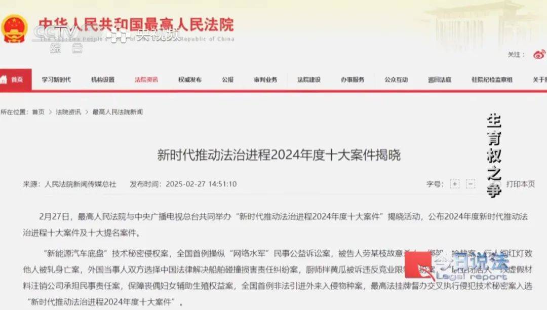 在我国司法实践中,王丽的故事并非个案。这起案件的判决,对丧偶妇女继续实施胚胎移植手术的合法性及伦理性进行了探索。2025年2月27日,最高人民法院与中央广播电视总台共同举办“新时代推动法治进程2024年度十大案件”揭晓活动,这起保障丧偶妇女辅助生殖权益案入选其中。
