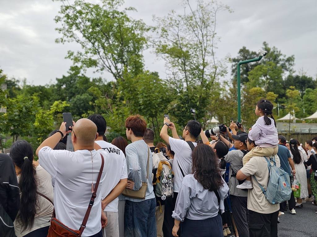 9月6日,成都大熊猫繁育研究基地,游客们纷纷打卡拍照,记录熊猫宝宝的精彩一刻。
